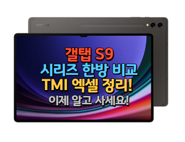 갤럭시 탭 S9 TMI 엑셀 비교!