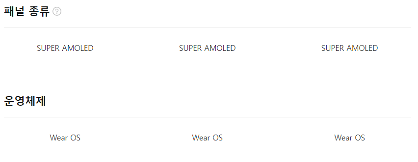 [사양]WearOS/엑시노스W930/듀얼코어/1.4GHz/램:2GB/내장:16GB/