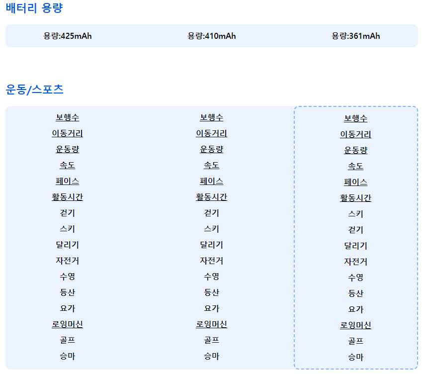 [배터리]용량:425mAh/평균사용:2일이하/