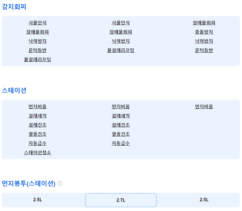 [스테이션]먼지비움/걸레세척/걸레건조/열풍건조/자동급수/스테이션청소/먼지봉투:2.5L/물탱크:정수3.5L+오수2.9L/걸레세척:냉수/걸레건조:온풍(45도)/