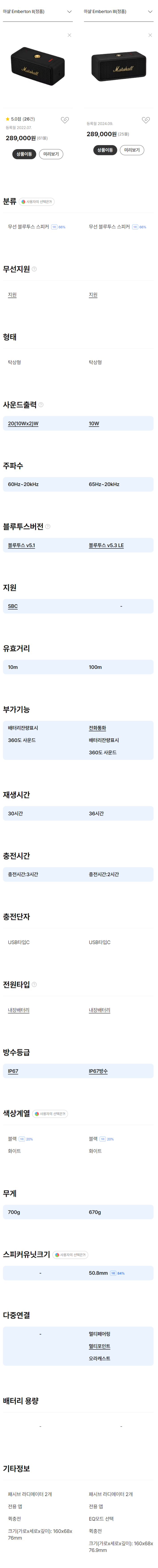 마샬의 인기 휴대용 스피커 시리즈인 엠버튼의 2세대와 3세대를 비교해보려고 합니다.