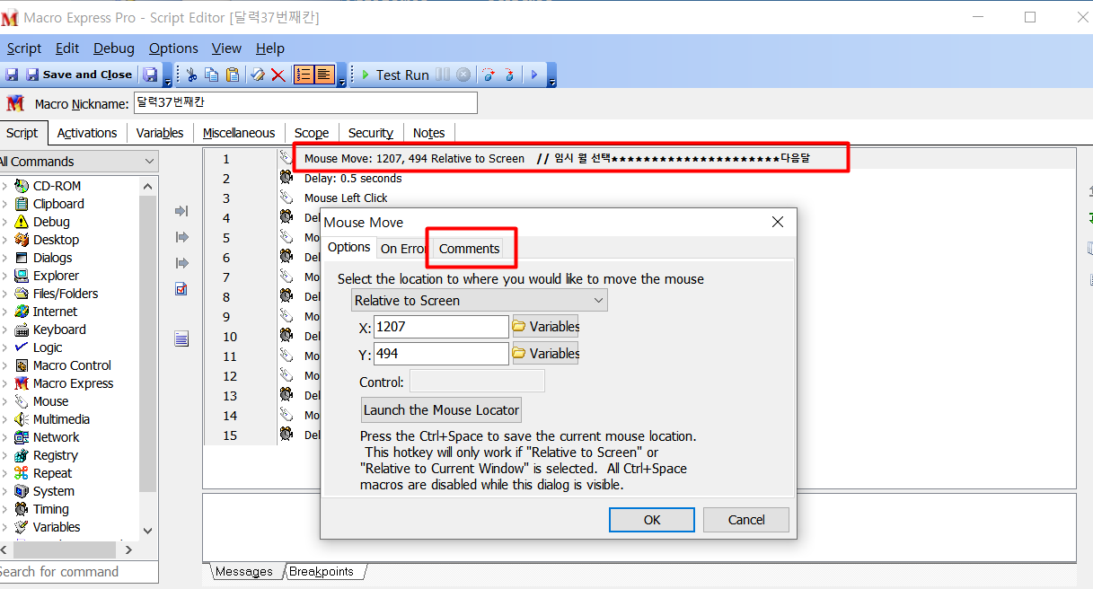 매크로 익스프레스로 코딩을 하다 보면 길~어 지게 되는 경우가 생깁니다.