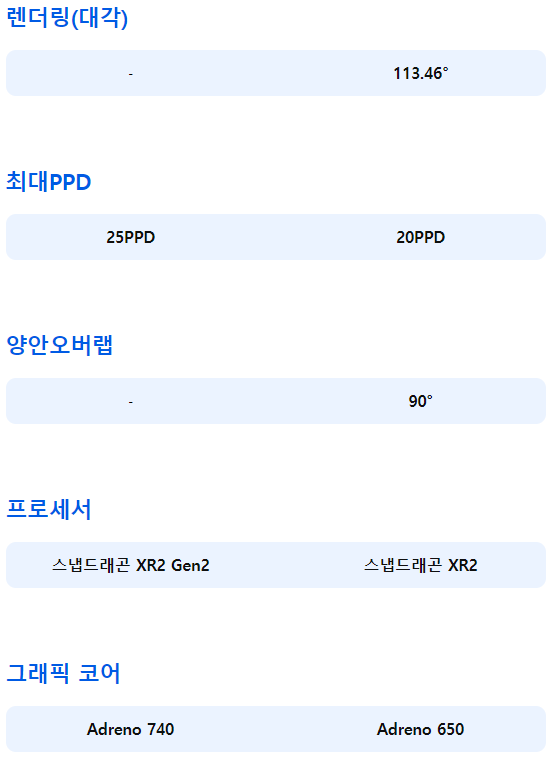 시스템 스냅드래곤 XR2 Gen2 / Adreno 740 / 램:8GB / 내장128GB /