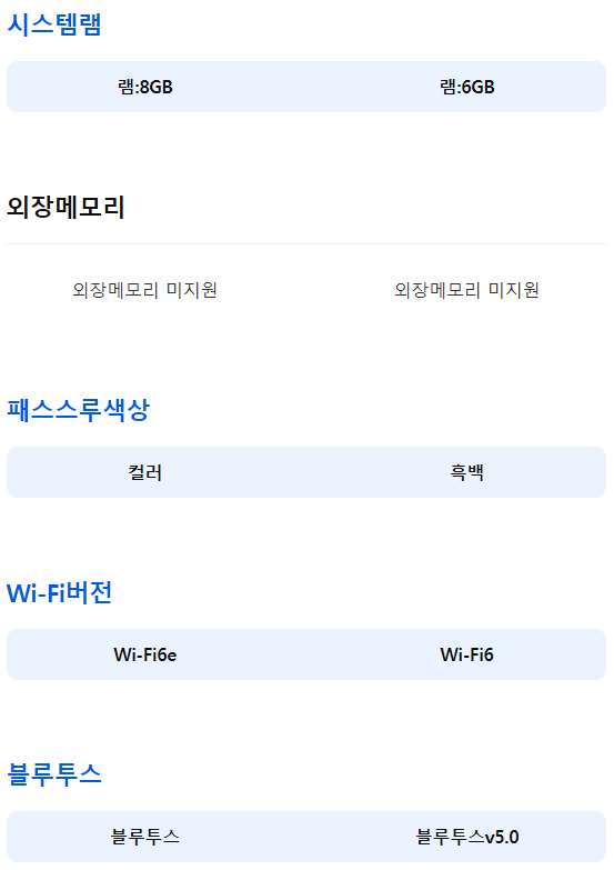 디바이스 Wi-Fi6 / 블루투스v5.0 / USB-C / 3.5mm / 3,640mAh / 약 3시간