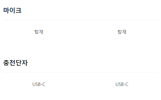 디바이스 Wi-Fi6 / 블루투스v5.0 / USB-C / 3.5mm / 3,640mAh / 약 3시간