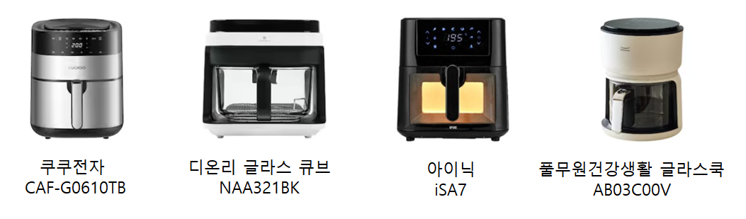 바스켓형 인기 에어프라이기 4종 비교! 쿠쿠전자 CAF-G0610TB, 디온리 글라스 큐브 NAA321BK, 아이닉 iSA7 풀무원건강생활, 글라스쿡AB03C00V