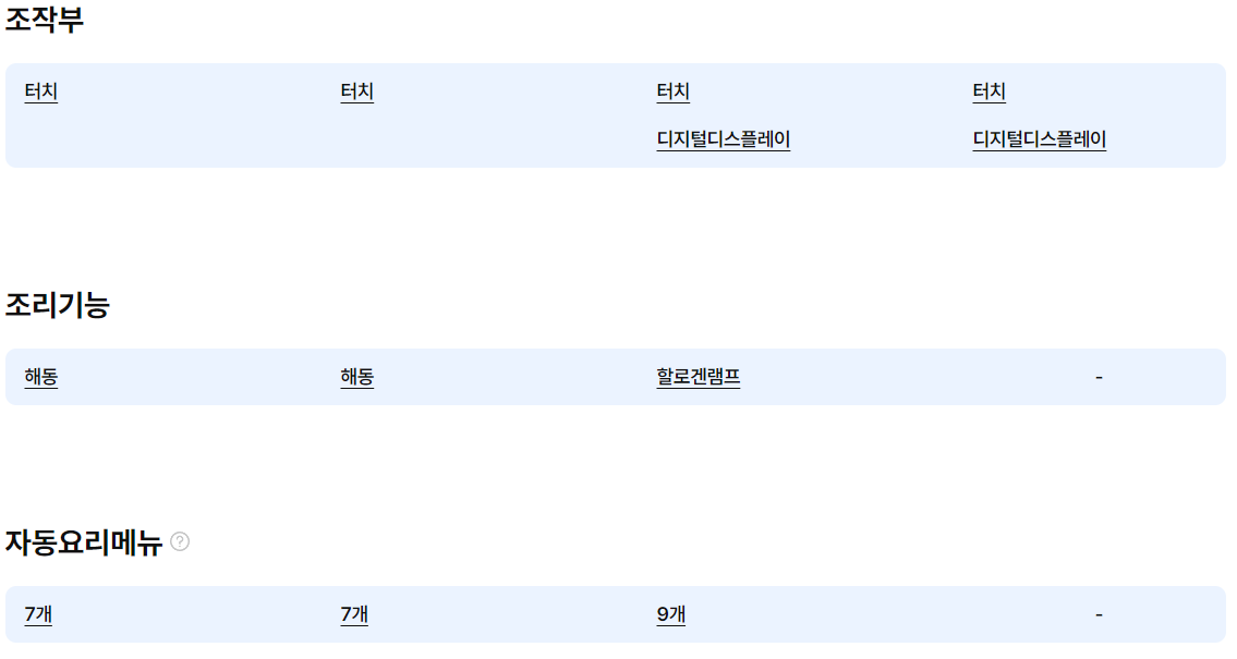 [조리] 내부투시창 / 할로겐램프 / 자동요리메뉴: 9개
