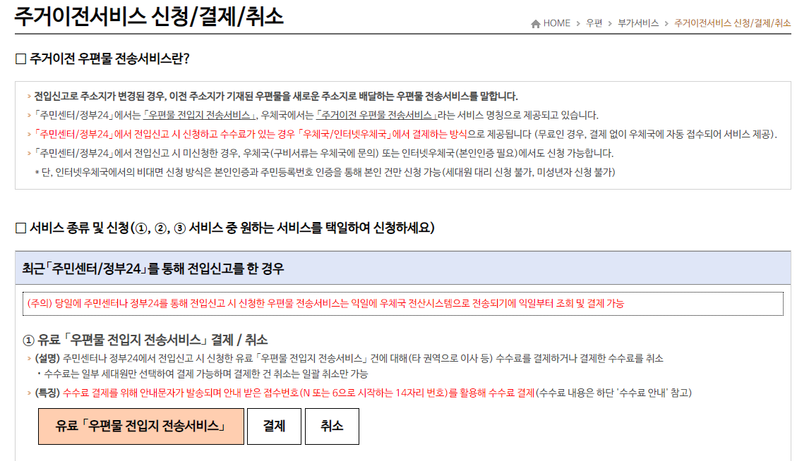 이사 후 주소 변경전 우편물이 도착 했을 때 새로운 주소지로 받을 수 있는 서비스입니다.