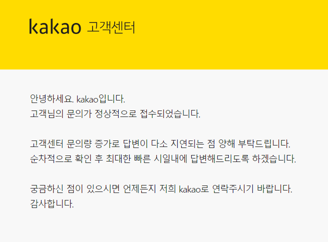 카카오 서비스 이용에 불편을 드려 죄송합니다.
