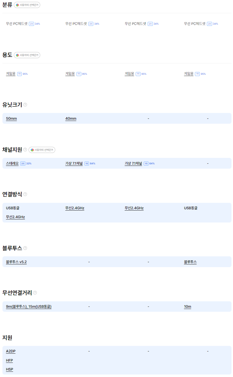 - 긴 사용 시간과 노이즈 캔슬링 마이크를 갖추고 있어 장시간 게임 플레이나 영화 감상을 원하는 사용자들에게 적합합니다.