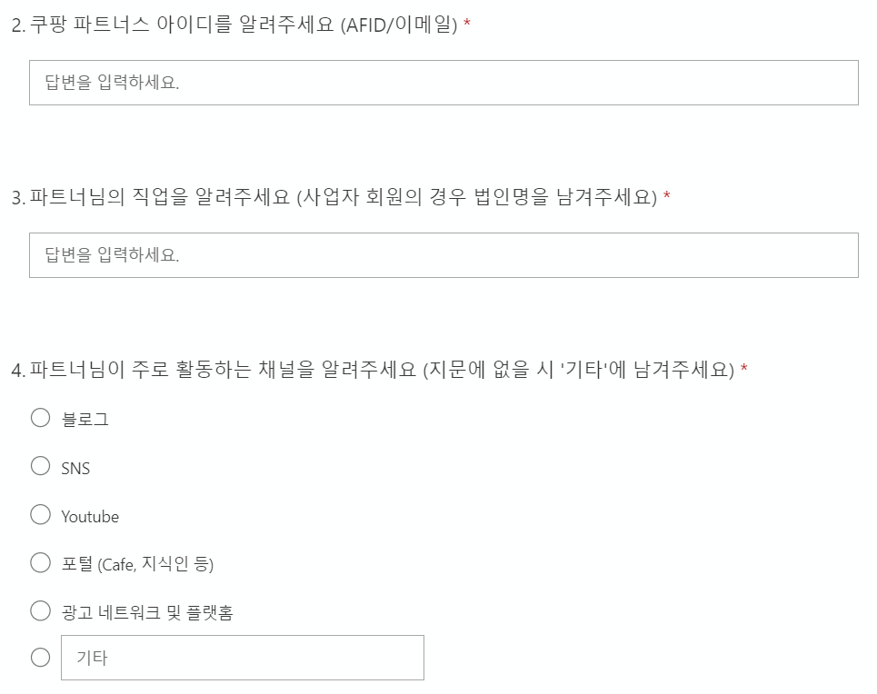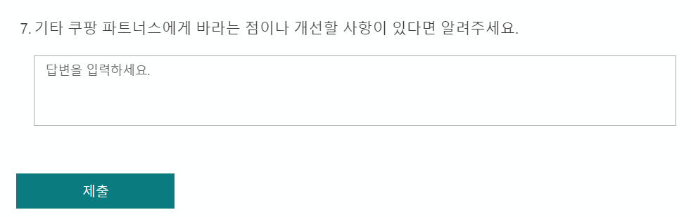 제출한 설문은 쿠팡 파트너스 및 외부 채널에 익명성을 보장하여 활용될 수 있습니다.