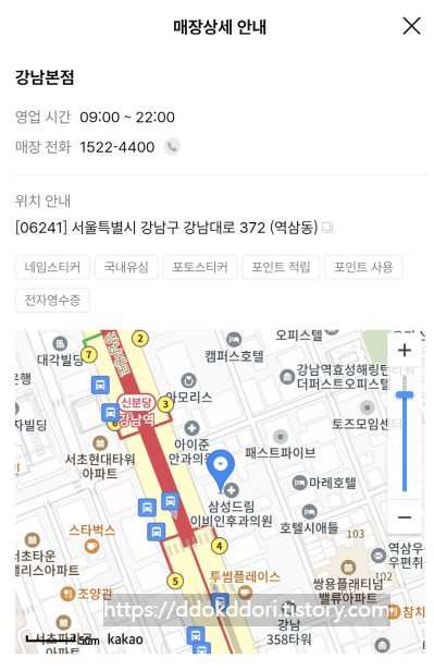 5. 해당 다이소의 영업시간 정화번호 위치안내, 지도 등을 알고 싶으면 매장 상세 버튼을 터치하면 알 수 있습니다.