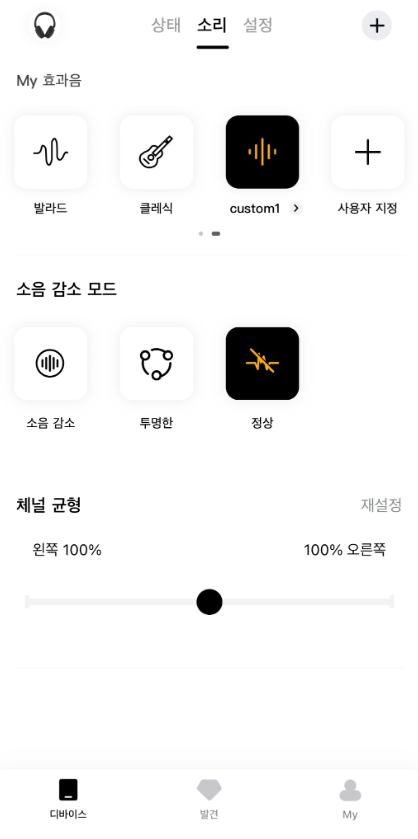 애플리케이션 EQ를 모두 0으로 설정하고 스마트폰음향을 조절하면,